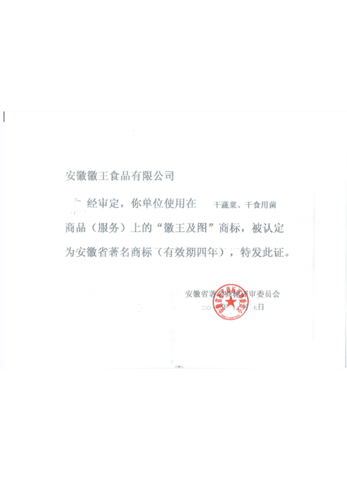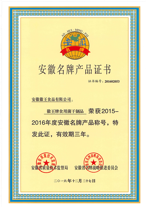 在品牌戰略的引導下,公司的產品贏得了廣大消費者和主管部門的良好評價與認可,并先后榮獲“全國重合同守信用單位”、“農業產業化省級重點龍頭企業”、“安徽省林業產業化龍頭企業”、“安徽省名牌產品”、“安徽省著名商標”、“省級休閑農業和鄉村旅游示范園區”、“首屆江淮十大杰出工匠”、“安徽省科學技術三等獎”、“合肥市科學技術進步一等獎”等榮譽稱號,產品通過了“質量管理體系”及“綠色食品”認證。